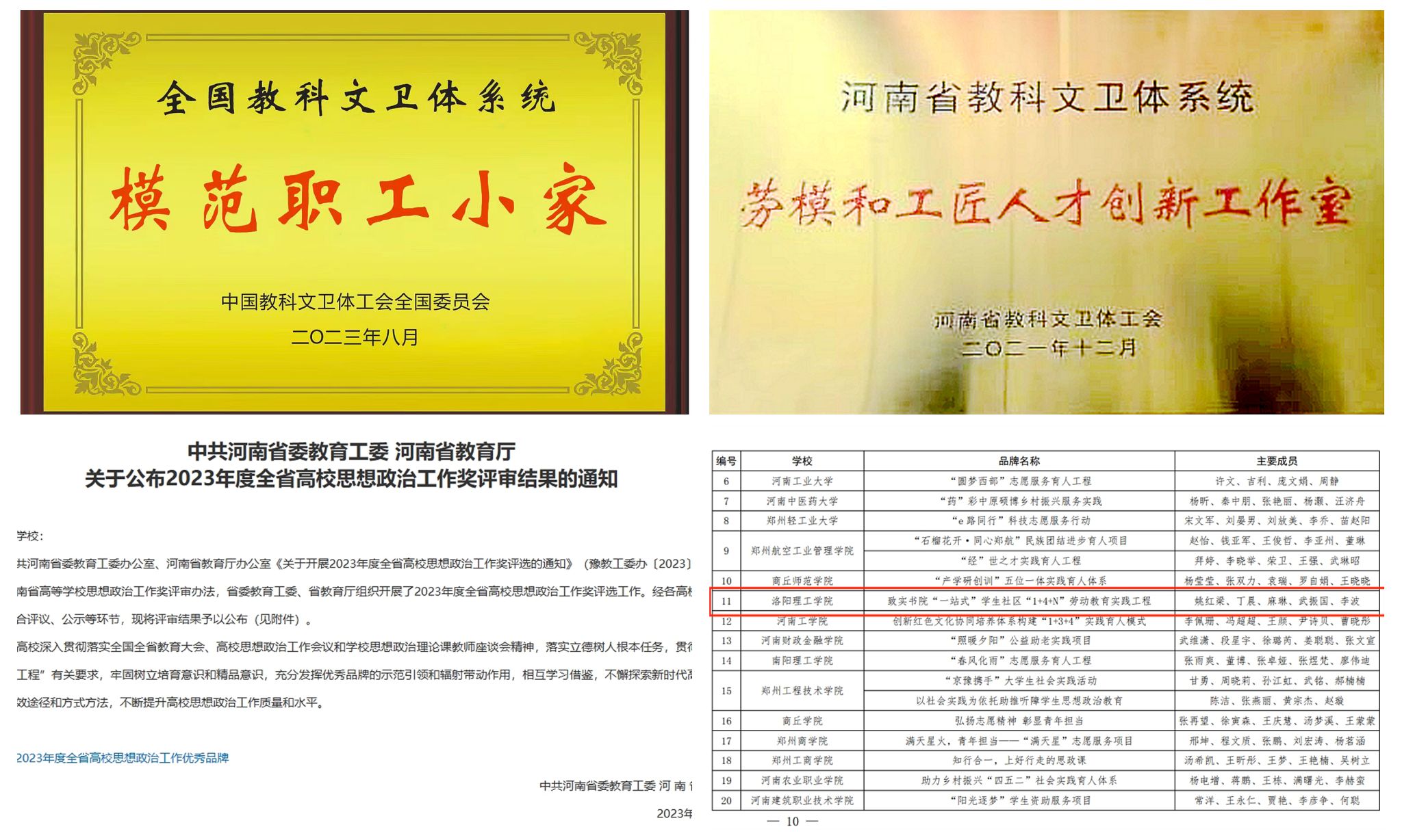 5.积极开拓创新,党建工作成效显著。学院党委在党建“双创”工作中成绩斐然,被推荐参评“全省高校党建工作标杆院系”。教工第四党支部推荐参评全省高校“双带头人”教师党支部书记工作室。学院党委获批“2023年度河南省教育系统党建创新项目”资助项目,致实书院“寓建”党建领航模式申报高校“一站式”学生社区工作案例风采展示。